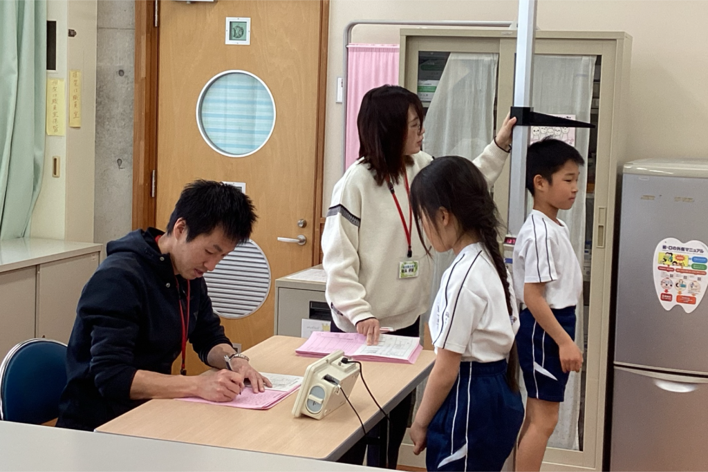 発育測定を行いました。子どもたちは、「大きくなったかな?」と少し緊張しながらも楽しみにしている様子でした。順番を待つ間には、『保健室ってどんなところ?』の動画を見ながら静かに待つ姿が見られました。測定後には、「伸びていた。」「大きくなっていた。」と自分の成長を喜ぶ姿が印象的でした。